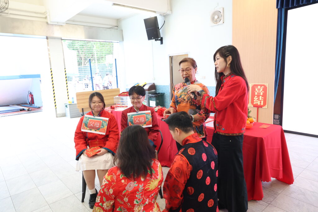 此外,學校特邀專業大妗姐親臨現場,講解婚嫁習俗,示範上頭及拜堂儀式,讓同學真切感受到傳統禮儀的莊重與溫馨,體驗中華文化的深厚底蘊。通過遊戲與互動體驗,同學們不僅加深對傳統文化中家庭觀念與禮儀的重要性的理解,更培養出對忠誠、孝順與責任等優良傳統美德的認同與尊重,從而促進文化的傳承與發揚。