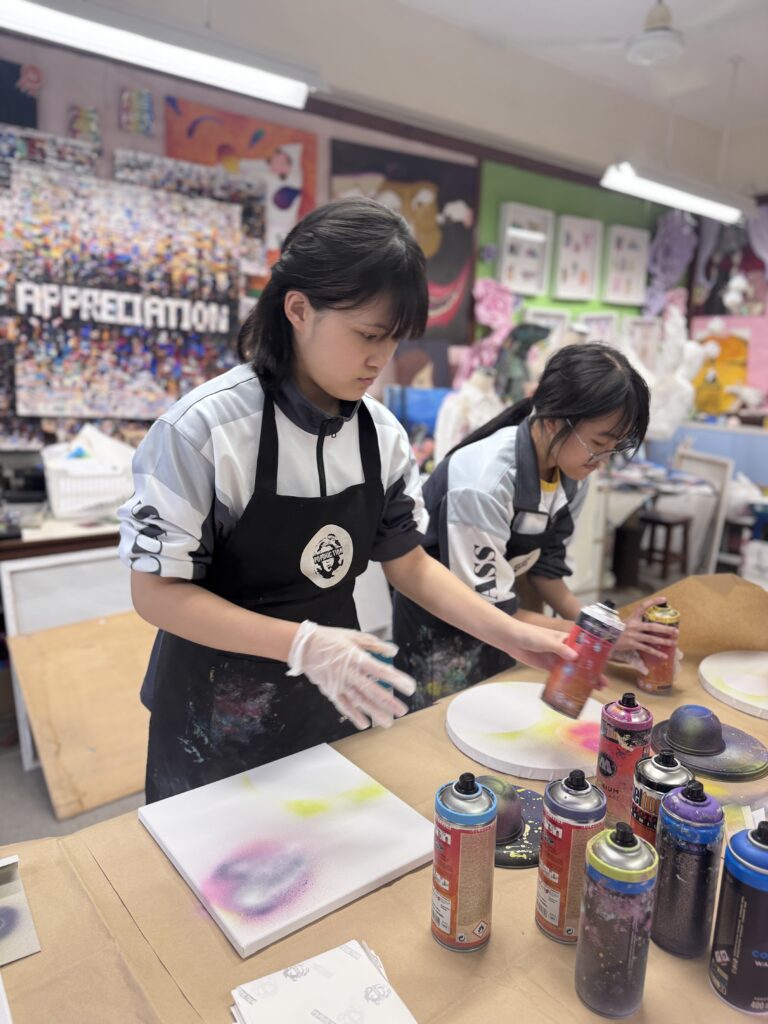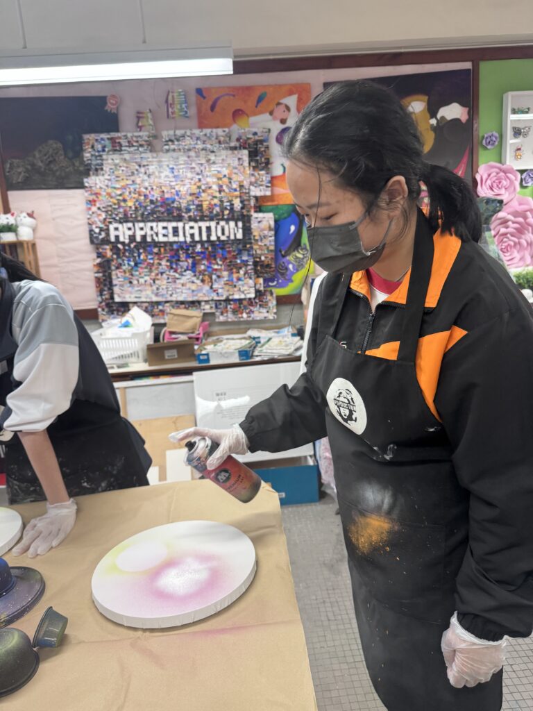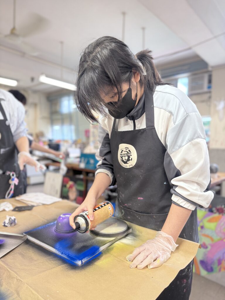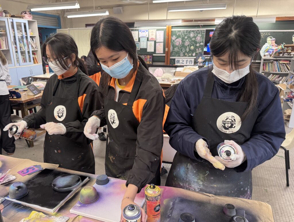 2025-2026(相集), 相集 塗鴉噴畫工作坊 02 3 月 中五級視藝科同學於2026年3月2日參與「塗鴉噴畫工作坊」,學習噴畫線條控制、重疊暈染噴法等的技法。 中上環市區更新考察 浸大參觀及編程體驗