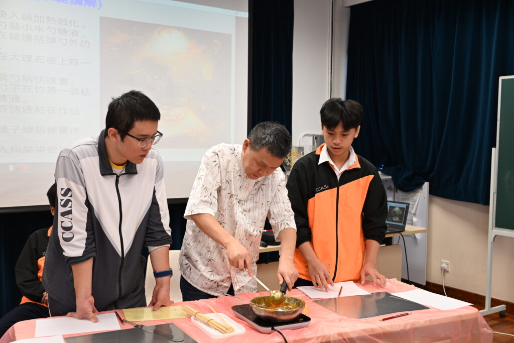 本校中史科於2025年11月24日舉辦「糖畫製作工作坊」,讓本校中五級修中國歷史科的同學參與。「糖畫」顧名思義是用糖作畫的傳統手工藝。這門技藝從北方傳到南方,最終在上世紀五十年代隨著個別糖畫師傅的到來,成為香港街頭一道獨特的風景線。可惜在七十年代末政府整頓市容後,糖畫師傅的身影逐漸消失在香港的大街小巷。