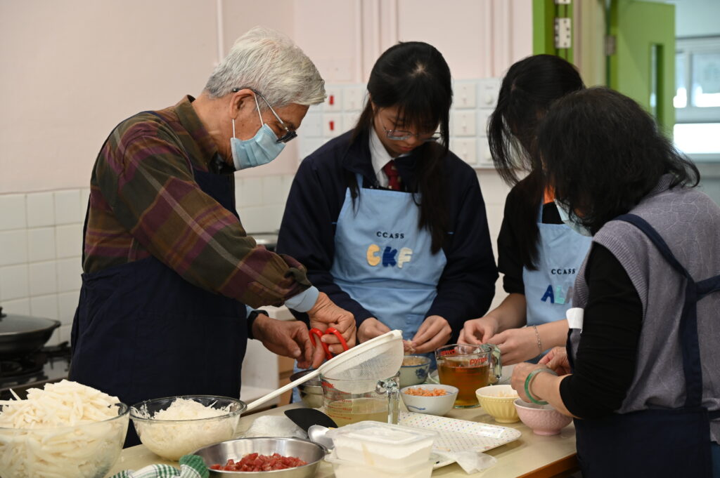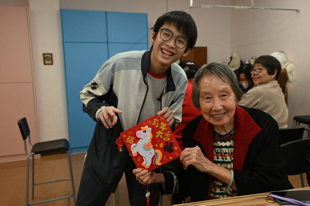2025-2026(相集), 相集 長者服務 14 2 月 潮中送暖展關懷~賀年篇 農曆新年前,本校同學陪同長者一起製作健康年糕及布藝揮春,為長者提供健康飲食的資訊,並送上節日的祝福。 期中頒獎禮 新春環保行