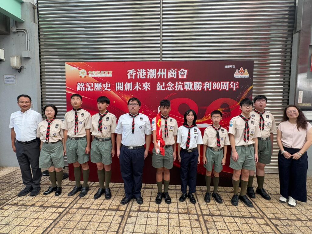 2025-2026(相集), 相集 香港潮州商會紀念抗戰勝利80周年活動 07 9 月 香港潮州商會紀念抗戰勝利80周年活動 – 7/9/2025 本校師生於2025年9月7日獲邀出席於上環海濱紅頭船旁舉行之香港潮州商會紀念抗戰勝利80周年活動,並以童軍中式隊列步操,進行升國旗儀式。 盂蘭文化巡遊 一人一制服團隊迎新會