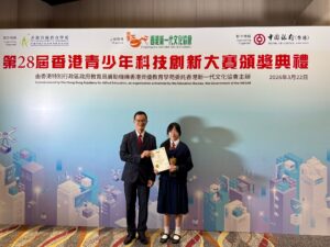 好消息,本校3A班連安澄同學於3月21日參加新一代文化協會舉辦的第28屆香港青少年科技創新大賽在初中化學及材料