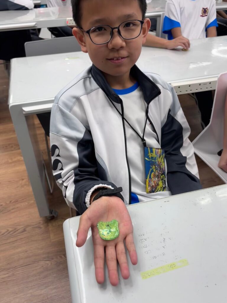 膠的材料特性與固化原理,從繪製、調色、灌注到光照固化,親手製作出獨一無二的鎖匙扣。課程將科學知識與藝術設計相結合,讓同學在實作中理解材料應用,並體驗將創意構想轉化為實物的完整過程與成就感。