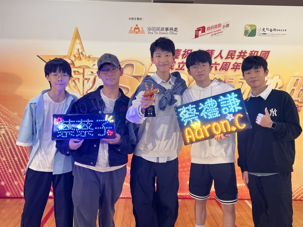 5D班蔡禮謙同學參加由沙田民政處及沙田文化藝術推廣委員會合辦「慶祝中華人民共和國成立七十六周年-Sing動沙田拉闊歌唱比賽」,在眾多參賽者中,脫穎而出,奪得中學組季軍。